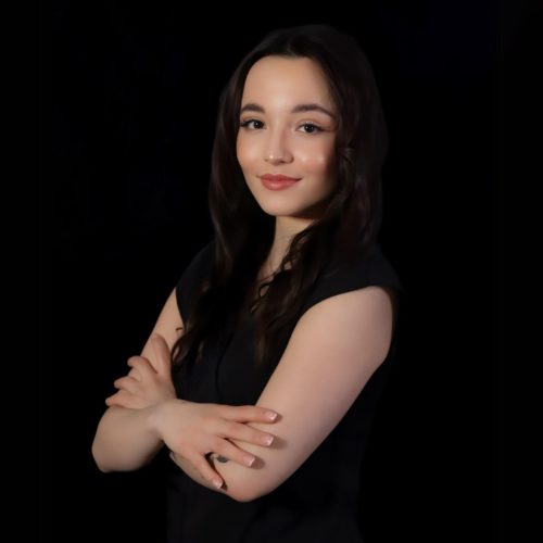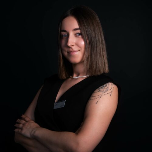 Portret lek. Marii Cierpki – specjalisty w Medicus Uroda, na jednolitym ciemnym tle